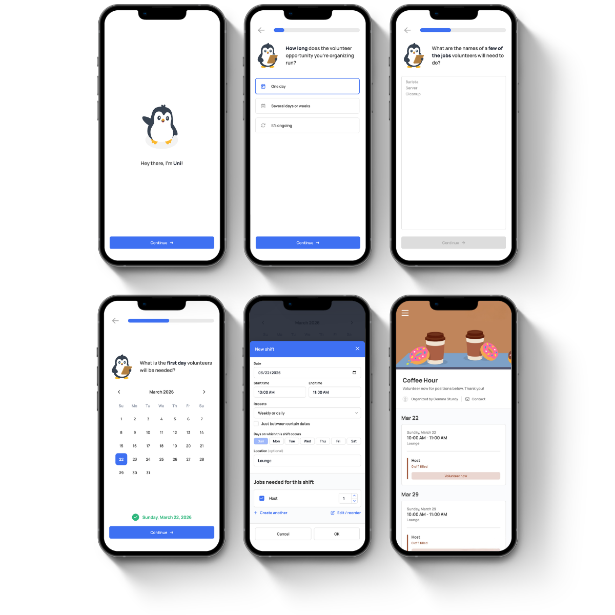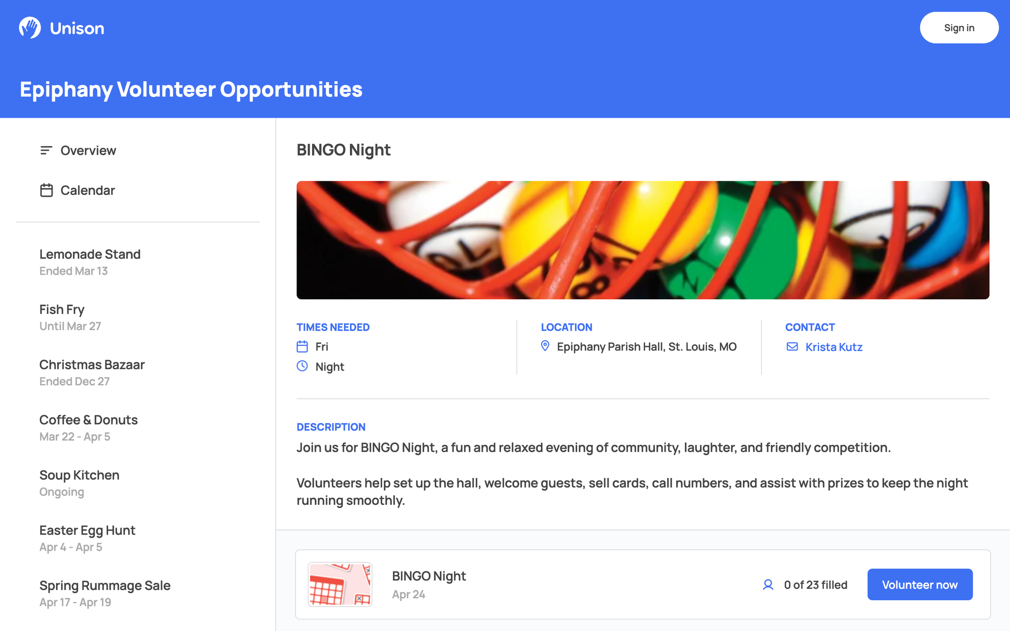 With Unison, volunteers land on a clean, ad-free signup page that shows available roles and one clear action: sign up.